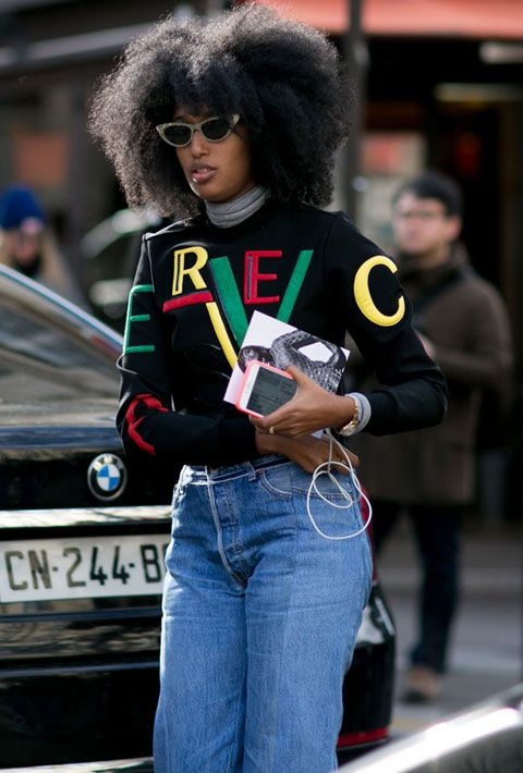 Porter ses longues jupes de soirée avec un long pull étroit et ses jupes sophistiquées avec un sweat (voir ici, ici et là). Contredire l'aura sévère du duo blazer/chemise en lui mariant un pantalon à l'imprimé fantaisie (voir ici). Marier rose et violet (voir ici). Egayer ses pantalons masculins au contact d'un pull-over fantaisie glissé dans ledit pantalon (voir ici). Accompagner des escarpins de princesse d'un jean droit 7/8 plutôt que d'une robe de cocktail (voir ici). Réchauffer une salopette kaki boyfriend (ou un jean large coupé court) au creux d'un opulent manteau en fausse fourrure (voir ici et là). Structurer sa silhouette en associant pantalon à pinces taille haute et perfecto un brin court (voir ici). Ne jamais hésiter à s'offrir une pièce doudou - aussi folle soit-elle - si l'on sait qu'on la portera facilement (voir ici). Oser télescoper marinière et jupe imprimée, le résultat graphique pouvant se révéler aussi surprenant que réussi (voir ici). Marier pull court et jean droit taille haute (voir ici). Continuer de porter ses pièces fortes/fétiches saison après saison, et ce quoi qu'en disent les tendances (2011 et 2017). Faire tailler ses robes estivales dans des tissus africains (voir ici). Assouvir sa passion du rose via des pièces sportswear et/ou pragmatiques, afin de dompter l'aura girly de cette couleur (voir ici, ici, ici et là). S'approprier la dimension seventies du trio blazer/jean flare/baskets blanches (voir ici).