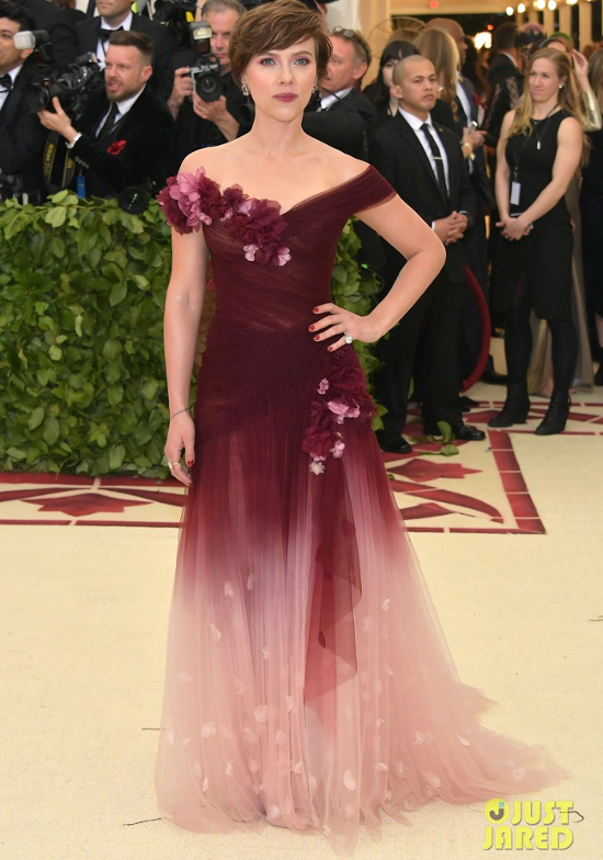 Certaines toilettes ne devraient être admirées que sous certains angles, comme nous le prouvèrent - à leurs dépens - Greta Gerwig (bon angle et mauvais angle) et Anne Hathaway (bon angle et mauvais angle) Avec sa toilette richement brodée signée Atelier Versace, Blake Lively semble tout droit sortie du Sacre de Napoléon de Jacques-Louis David. Parasitée par un corsage créant un malheureux effet d'optique et une traîne pas forcément bien proportionnée par rapport au reste de la tenue, l'allure de Diane Kruger perd en évidence (voir ici). Déguisée en poulpe réglisse converti au catholicisme par le rap, Solange Knowles fit rimer SF et religion (toilette Iris Van Herpen). Là où certaines abusèrent des crucifix dorés, Janelle Monáe opta quant à elle pour le chapeau à effet d'optique "auréole divine" (voir ici). Salma Hayek fila la métaphore "Jardin d'Eden" au risque de donner l'impression de s'être drapée dans les rideaux de la chambre de sa fille (voir ici). Au cas où vous ne seriez pas au courant, l'actrice Claire Danes attend un heureux évènement (voir ici). Les tops modèles invitées par Anna Wintour ne se privèrent pas de dévoiler leurs "corps célestes" à grand renfort de fourreaux épousant leur plastique affolante (voir ici, ici et là). Mêlant lignes strictes, sensualité sobre et énergie graphique, la grammaire stylistique de Nicolas Ghesquière éprouve souvent des difficultés à livrer son plein potentiel en situation de "red carpet" (voir ici, ici, ici et là). Pour avoir une idée de ce à quoi Scarlett Johansson ressemblera dans quelques années, il suffit de jeter un oeil à son apparition d'hier soir... (voir ici)