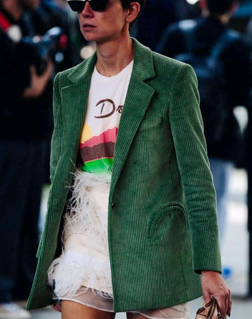 Apaiser la dimension glamour des plumes en les associant à un blazer masculin (voir ici et là). Booster la dégaine de son trench kaki en le portant le col relevé, le tout surmonté d'un fédora fauve (voir ici). Electriser une harmonie de teintes un brin terne en mixant matières et imprimés (voir ici). Offrir une existence diurne à ses robes du soir en y glissant un sous-pull (voir ici). Extraire les plumes de leur champ lexical "cocktail" en les incorporant à un look monochrome, en les mariant à un élément casual ou en les portant sous un blazer masculin clairement trop grand. Alléger un combo de coloris audacieux en préférant les imprimés aux aplats de couleurs (voir ici).
