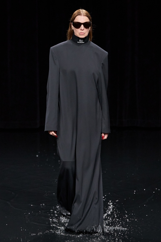 N'en déplaise à l'aristocratie fashion habituée à être placée au premier rang (voir ici), Demna Gvasalia rétrograda cette saison toutes les "front row girls" au troisième rang. Il faut dire que les deux premiers étaient inondés… Ajoutez à cette montée des eaux parisiennes un plafond LCD projetant des images lugubres et vous obtiendrez le décor le plus sinistre du moment, mais aussi et surtout le plus en phase avec l'atmosphère de ces derniers mois. Dans cette ambiance à la Barjavel défilèrent pas moins de 109 silhouettes dont le regard sinistre, les pommettes morphées et la démarche détrempée - mais néanmoins déterminée - achevèrent de faire de ce show Le moment fort de cette fashion week parisienne.