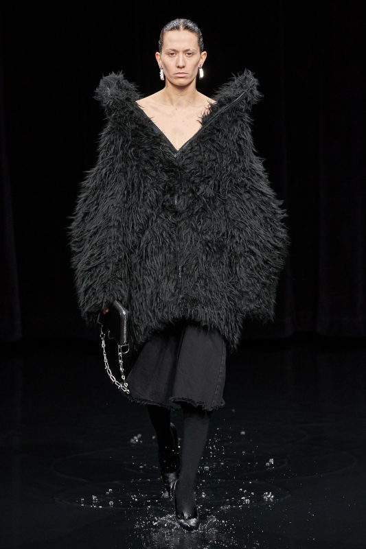 L'oversize caricatural, les cuissardes de pluie, les épaulettes chauve-souris et l'opportunisme de ce genre de partis pris scéniques lorsque l'on sait que l'industrie de la mode est l'une des plus polluantes.