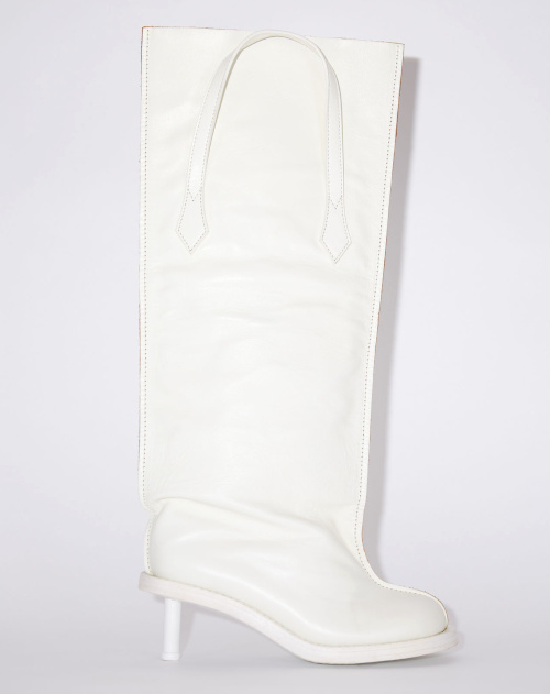 Des chaussons de pluie ayant apparemment été interrompus en pleine digestion d'une paire de chelsea boots (Stella McCartney). Une mini-jupe en tweed à carreaux célébrant tacitement les 25 ans du film Clueless… (LoveShackFancy) Une paire de boucles d'oreilles évoquant le rayon gadgets d'un serrurier (Eéra). Une robe en cuir ressemblant davantage au tablier d'un forgeron tout droit sorti de la série Outlander qu'à une toilette rock pour modeuse contemporaine (The Row). Un pantalon orange dont la teinte rappelle celle des plots signalétiques utilisés par la Sécurité routière (Alex Perry). Des chaussons de ville ayant abjuré leur foi en la notion de "bon goût" au profit du culte des divinités Confort, Douceur et Chaleur (Isabel Marant, Prada). Une pochette reprenant le gimmick du masque chirurgical porté au poignet (Loewe).