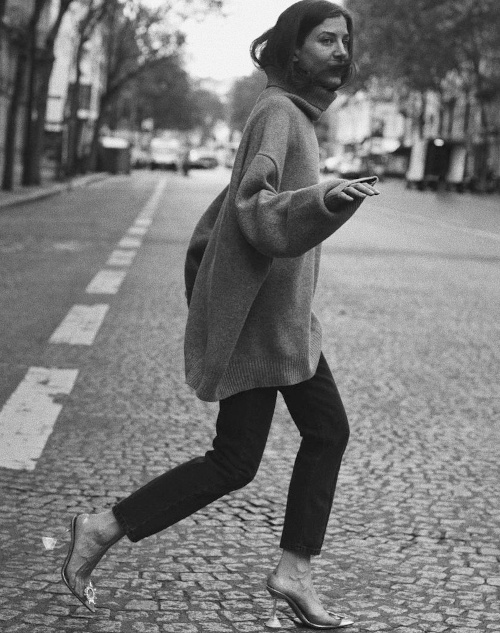 Le manteau col rond associé au col roulé c'est superbe, mais les chaussures vraiment très grosses sur certaines photos ne m'emballent pas plus que ça. Casser un look trop convenu OK mais le fracasser c'est dommage.