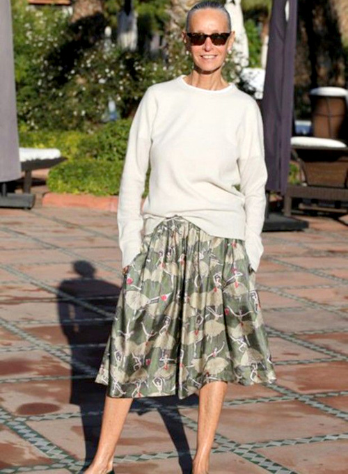 C'est la classe à Las Vegas, bon sang cette élégance décontractée ( attention oxymore pour certains) ....elle sait porter les jupes à plis sans faire fermière, je vais mettre ses looks dans mon dossier "Inspire "et bosser le sujet , bravo pour cette découverte 😊
