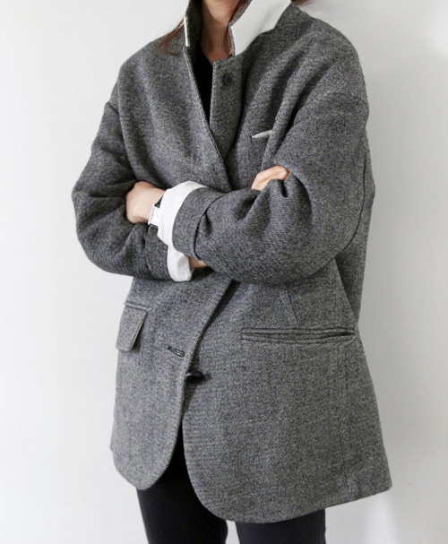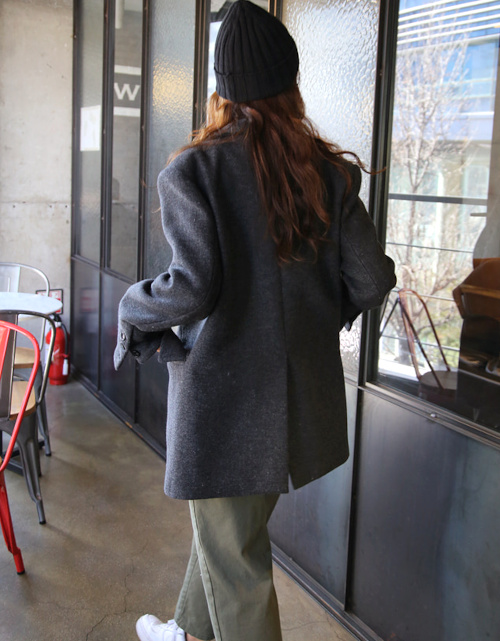 Dénicher une veste de travail revisitée en manteau (voir ici).