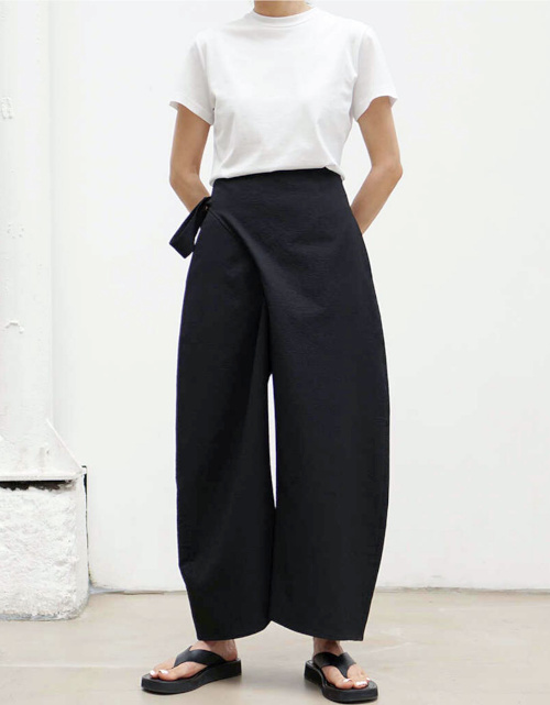 Opter pour des pantalons noirs à la coupe forte et minimaliste permettant d'upgrader ses looks noir et blanc (voir ici).