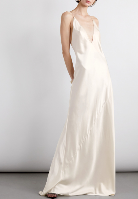 Batteuse au sein d'un groupe de rock indie californien, Amanda peut compter sur la magnanimité paternelle - développeur de génie ayant fait fortune au sein de la Silicon Valley - pour financer sa vie de bohème. Elle considère la cote d'Hedi Slimane largement surévaluée, n'a pas ingurgité un gramme de protéine animale depuis la mort de sa mangouste en 2010 et admire secrètement le style de Veronica Lake. Son choix : un déshabillé au tombé liquide et aux détails sensuels (entre décolleté plongeant, longueur généreuse et dos nu vertigineux) (Saint Laurent).