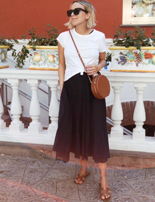 Ceinturer ses robes sous la poitrine de manière à structurer la silhouette (voir ici). Aller le plus souvent possible vers le moulant (voir ici, ici et là). Faire du combo chemise/short/baskets l'un des basiques de sa garde-robe "future maman" (voir ici). Ne pas hésiter à transformer les tee-shirts de son homme en nuisette casual (voir ici). Opter de temps à autre pour une toilette immaculée évoquant la puissance sereine de la maternité (voir ici). Nouer tee-shirts et robe tee-shirts sur le côté afin de souligner l'arrondi du ventre (voir ici). Aller vers des imprimés inattendus (voir ici). Entre le moment où l'on ne rentre plus dans ses vêtements d'avant et celui où le baby bump sera suffisamment volumineux pour créer de sublimes looks de grossesse, accepter de vivre en maillot de bain une pièce (ou pas) (voir ici). Superposer robe noire ultra moulante et chemise graphique nouée juste sous la poitrine (voir ici). Apporter un brin de structure aux tee-shirts, combi-cyclistes et autres mini-robes bodycon en leur associant une chemise portée ouverte (voir ici, ici et là). Porter ses jeans le plus longtemps possible en assumant de ne plus pouvoir les boutonner (voir ici et là). Faire du trench l'allié de toutes ses tenues moulantes ou fluides (voir ici et là). Jouer sur les contrastes en optant pour un top couvrant sur le devant et aéré dans le dos (voir ici). Nouer son tee-shirt au dessus de son ventre (voir ici, ici et là). Casser le potentiel premier degré des pièces en lin en leur associant une paire de baskets (voir ici). Délaisser son iPhone pour se consacrer à de nouveaux passe-temps (voir ici). Laisser libre l'une des bretelles de sa salopette (voir ici). Affûter ses robes longueur genou au contact d'une paire d'élégants escarpins (à réserver à celles possédant une bonne circulation sanguine) (voir ici). Penser à accessoiriser ses robes les plus sobres (voir ici et là). Dénicher une jupe droite midi englobant parfaitement le ventre et la twister en la mariant à un tee-shirt (voir ici). "Upgrader" ses tenues les plus confortables avec un accessoire ne correspondant pas au style de la tenue (voir ici et là). Faire de sa grossesse un joyeux moment d'expérimentation stylistique (voir ici et là). Ne pas sous-estimer la dimension "adaptable" du paréo (voir ici). Trouver enfin une utilité au pull cape sans manches, qui permettra de sortir de l'anonymat le duo tee-shirt/jupe mi-longue (voir ici). Délaisser de temps à autre les pantalons de grossesse au profit d'un jean choisi en taille XXXL (voir ici). S'autoriser le total look maille en privilégiant les pièces de caractère (voir ici et là). Éviter d'associer long pull et jupe longue, l'ensemble ayant tendance à tasser la silhouette (voir ici). Marier top cropped et chemise masculine (voir ici). Porter ses gilets à même la peau et déboutonnés sur le bas (voir ici et là). Remplacer au sein de ses costumes la chemise blanche par un tee-shirt blanc plus confortable (voir ici). Réchauffer ses robes les plus "fleur bleue" au creux d'un blazer masculin (voir ici).