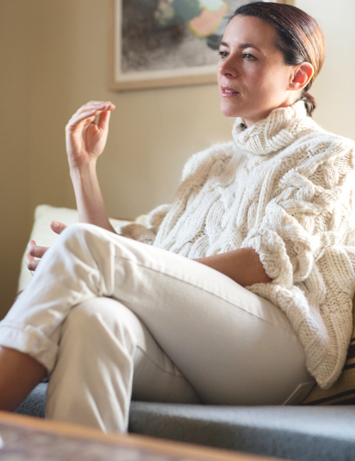 Comme son teint contraste avec ses cheveux, elle devrait porter des coloris assez profonds, dans les tonalités chaudes. Surtout pas les pastels ni les teintes délavées. Noir, gris et blanc sont à bannir.