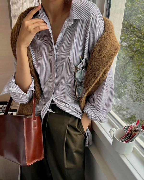 Réchauffer le duo tee-shirt + chemise rayée bleu/blanc au creux d'un trench mastic (voir ici). Glisser un petit pull manches courtes sous un débardeur en maille (voir ici). Associer pantalon en velours marron et chemise à rayures verticales bleues et blanches (voir ici). Adoucir le tandem pantalon kaki/chemise masculine au contact d'une maille caramel duveteuse (voir ici). Laisser dépasser une chemise à carreaux de ses pulls fins grand col V (à porter sur un jean large) (voir ici). Télescoper robe drapée et blazer un brin trop grand (voir ici). Insuffler une certaine dose de cosyness à ses jupes courtes en les mariant au tandem pull épais col V/ample chemise à carreaux (voir ici). Relever le col de ses blazers (voir ici). Opter pour des gilets zippés injectant ce qu'il faut de modernité aux tenues les plus classiquement casual (voir ici). Penser à associer une robe chemise longue et fluide au duo jean/blazer (voir ici). Ceinturer taille haute ses vestes de demi-saison (voir ici). Faire la part belle aux manteaux possédant une capuche pensée pour être portée (voir ici). Faire de son sac un vase à part entière (ou pas) (voir ici). Réchauffer ses totals looks denim au creux d'un blazer en tweed fleurant bon la campagne anglaise (voir ici).