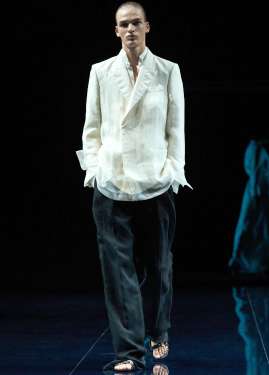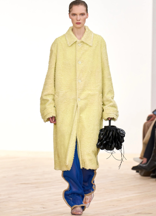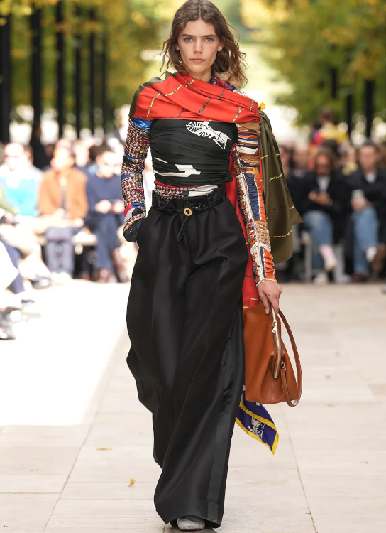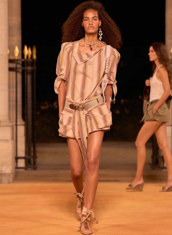 Seul bémol : l'omniprésence des longueurs cropped (voir ici et là), qui impliquent de remplacer nos visites quotidiennes à la boulangerie par un abonnement à la salle de sport. Chez Vêtements, difficile de penser que les pleurs d'Anok Yai n'étaient pas scénarisés. Il y a en effet fort à parier que Demna ait cherché à reproduire le coup d'éclat de 2024, lorsque la mannequin avait quitté - spontanément - le podium en courant. Isabel Marant n'est pas venue saluer à la fin du défilé de sa marque éponyme, signifiant ainsi qu'elle passe officiellement le flambeau à son associée Kim Bekker. Reste à espérer que cette dernière parviendra à insuffler une dose de nouveauté à l'ADN de la maison, sous peine de nous faire périr d'ennui… (voir ici, ici et là)