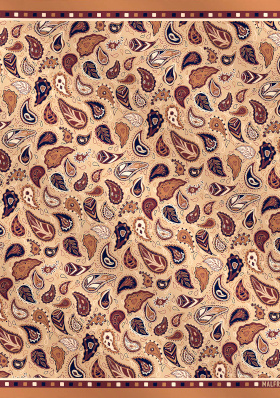 Le foulard se porte en bandeau dans les cheveux noués en chignon.