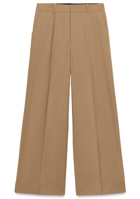 Le drap de laine presque sévère de la jupe est adouci par la maille moelleuse du pull.