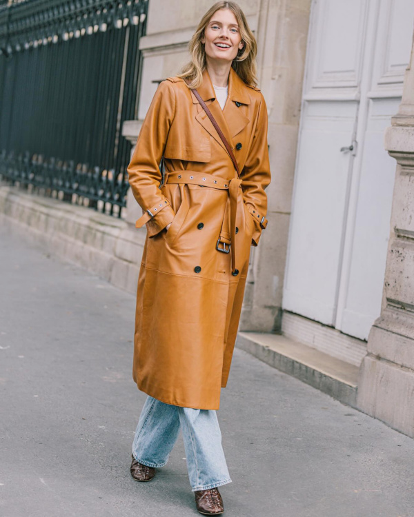 Investir dans un trench en cuir évoquant la teinte des gâteaux "Chamonix" (voir ici).