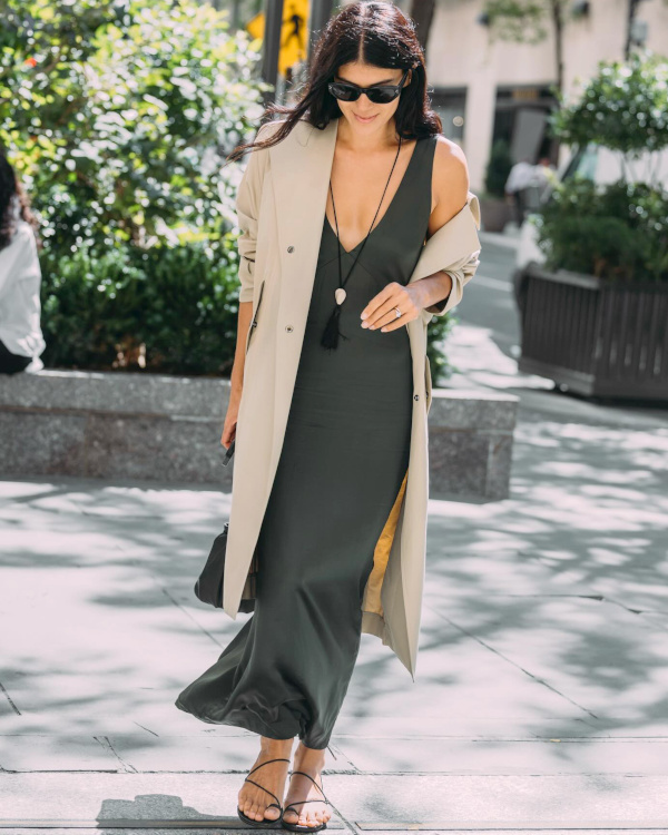 Réchauffer ses robes sobrement chics au sein d'un simple trench (voir ici).
