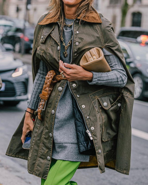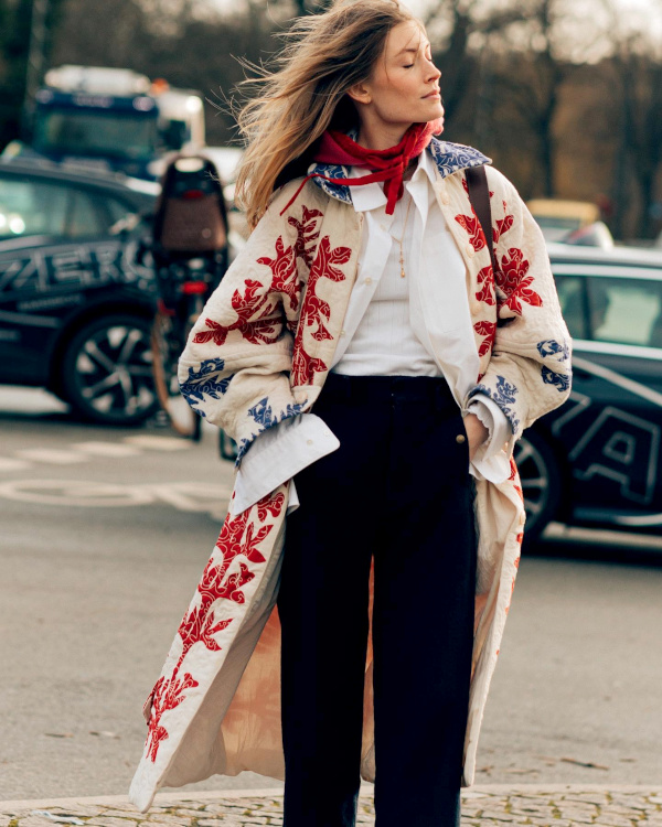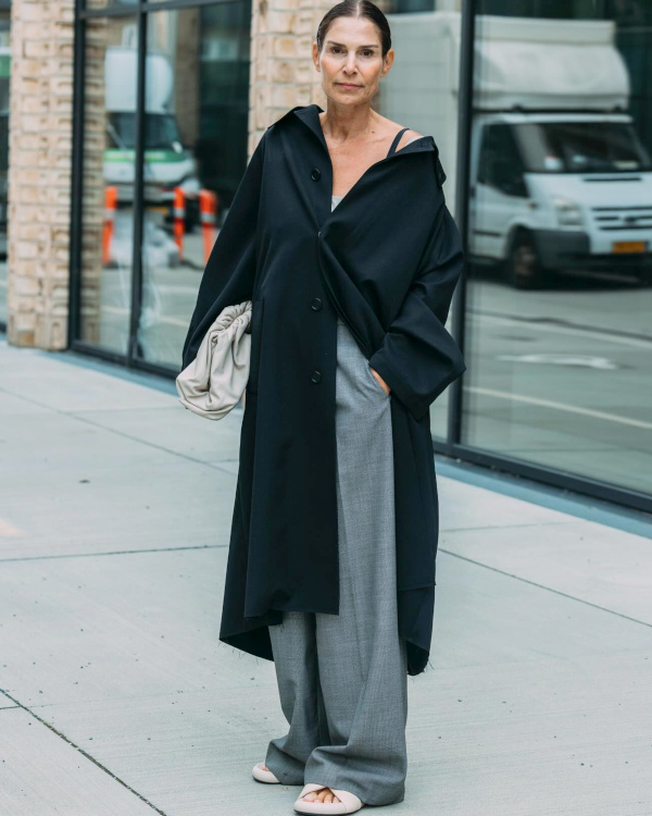 Porter ses manteaux légers basculés sur l'arrière et dévoilant une épaule (voir ici).