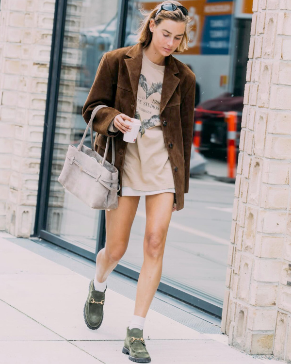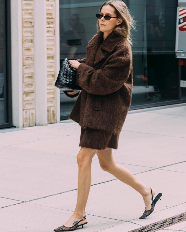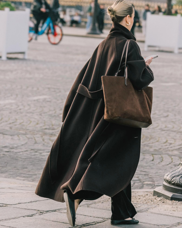 Sublimer ses total looks marron en misant sur des volumes élégants et des textures variées (voir ici).