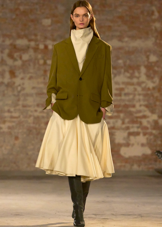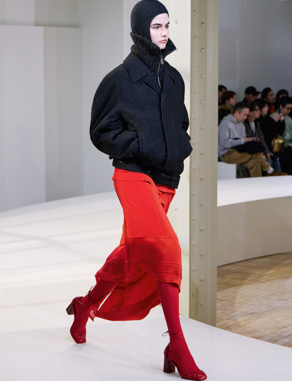 Laisser sa jupe recouvrir le haut de ses bottes (Porter Magazine, AMI).