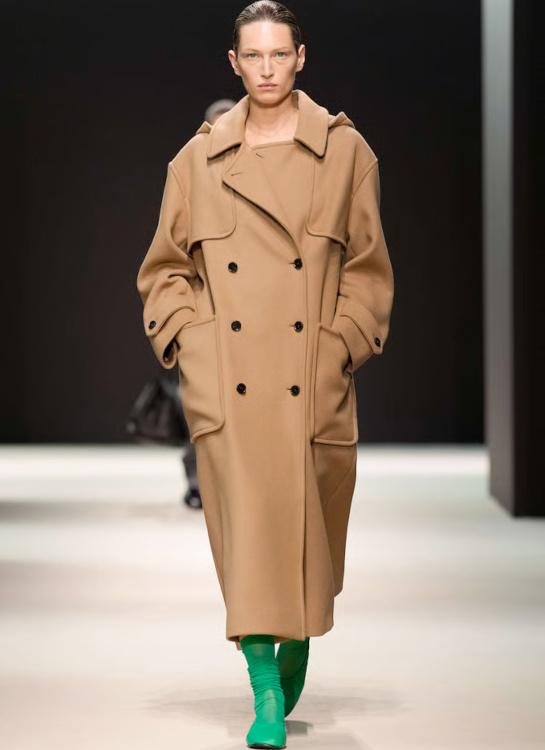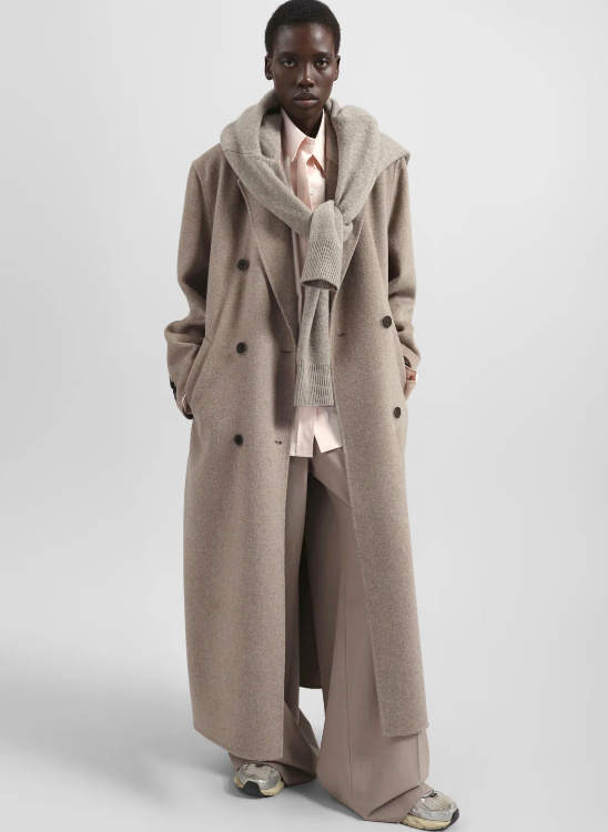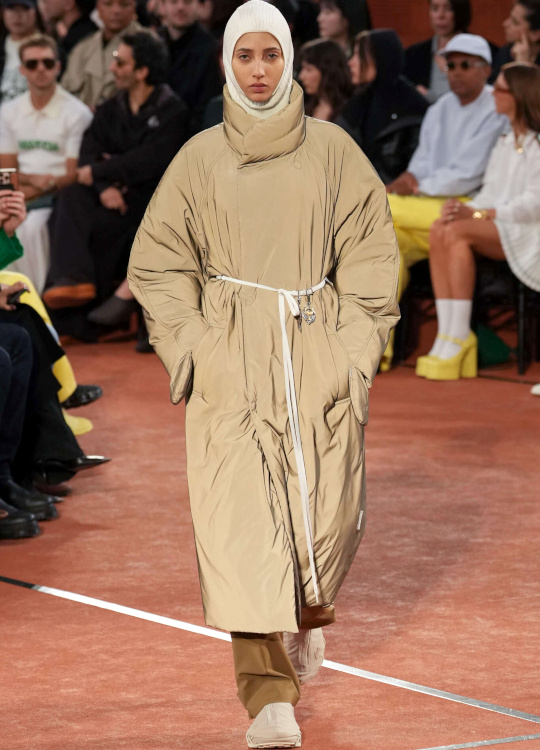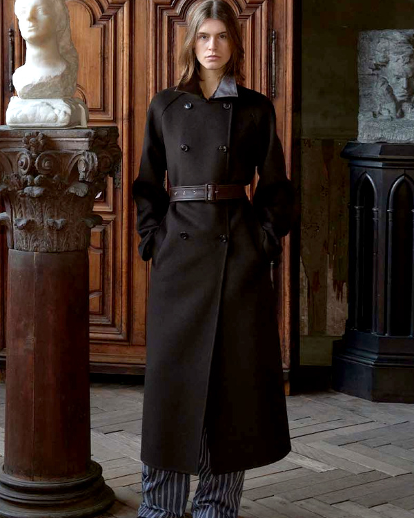 Cintrer ses amples manteaux au moyen d'un simple lacet plat (Lacoste).
