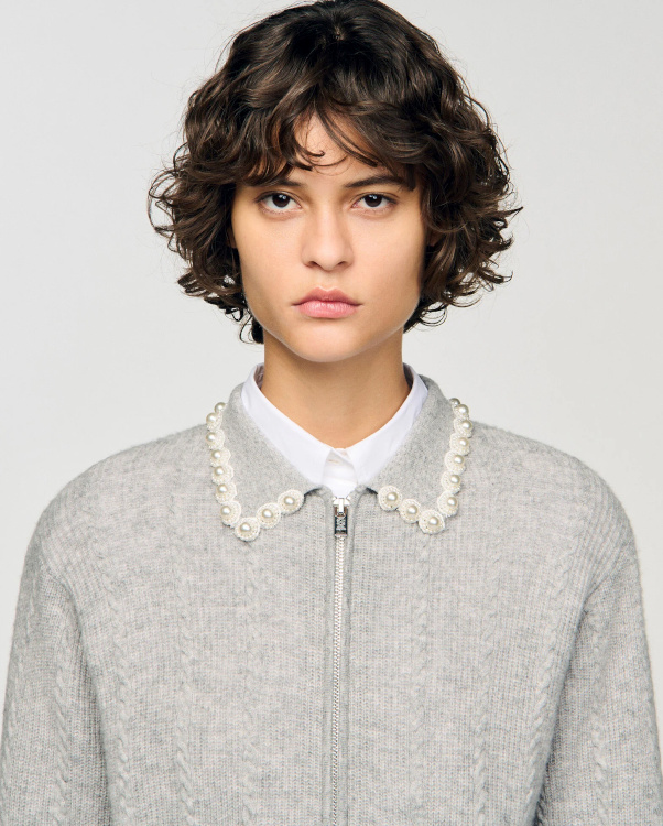 Glisser une chemise boutonnée haut sous un gilet zippé (Sandro).