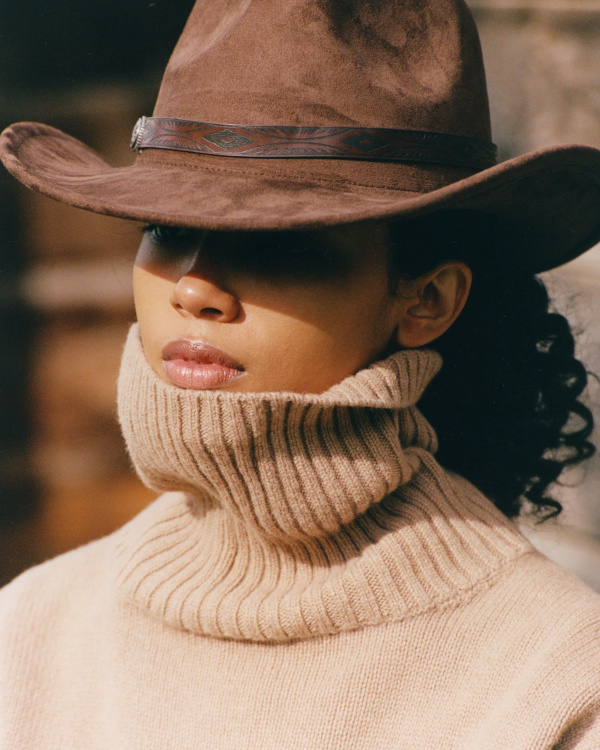 Accompagner ses cols roulés portés déroulés d'un chapeau de cowboy (une fois de plus idéal pour aller chercher le pain ou pour signifier à nos collègues que l'on est au 27e jour de notre cycle) (Sporty and Rich).