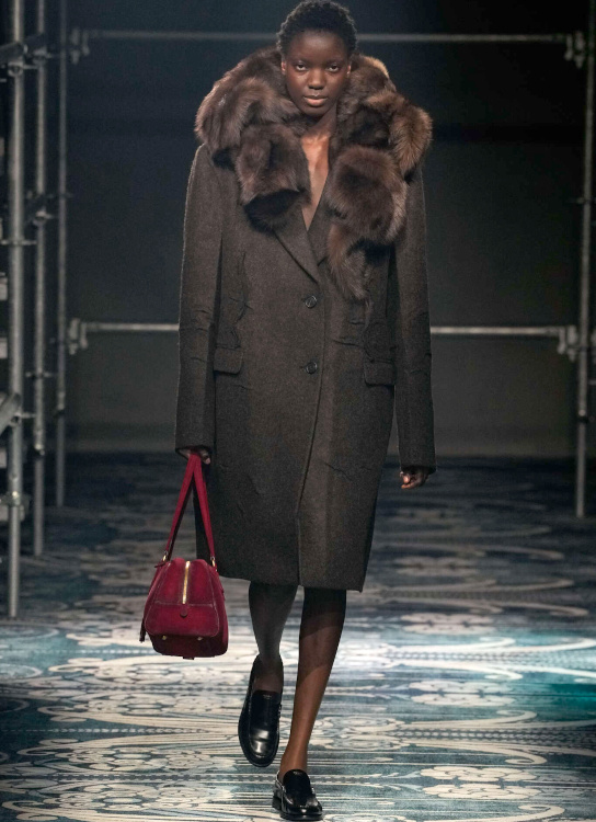 Accompagner blouson et pardessus d'une opulente écharpe en fausse fourrure (ou d'une fourrure vintage) (Miu Miu, Prada).