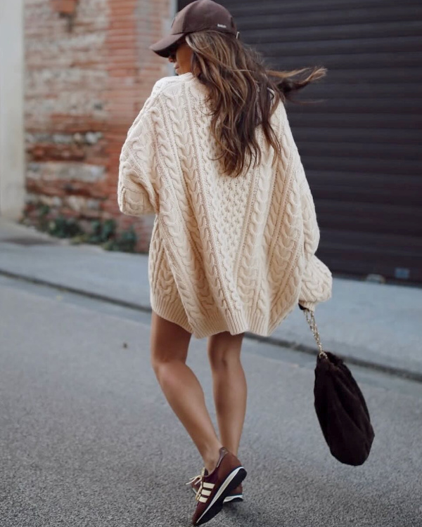 Transformer en robe à part entière les pulls hérités de notre oncle basketteur irlandais (The Frankie Shop).