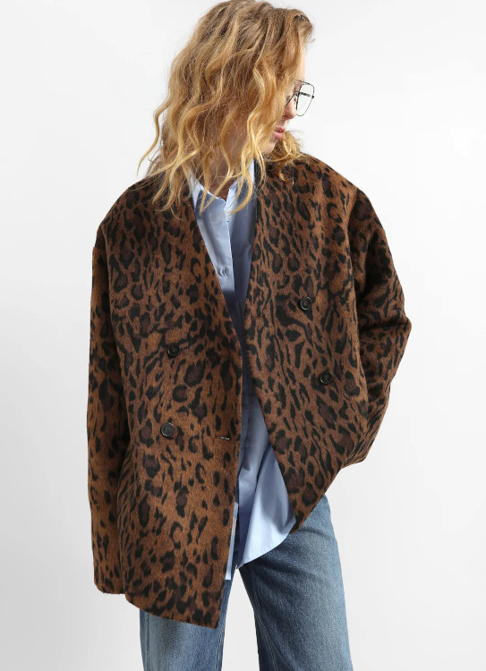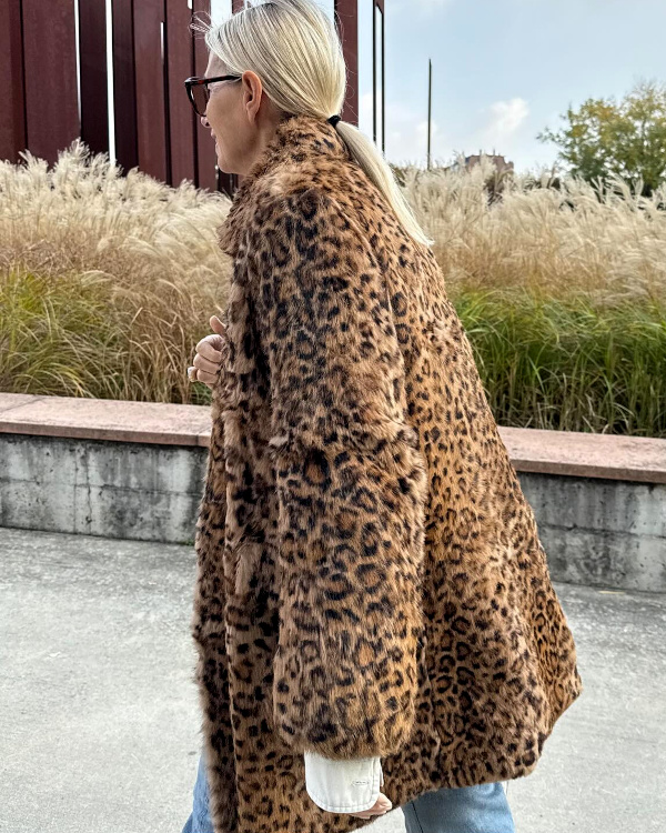 Marier manteau noir et sac rigide léopard (Benedicte Burguet).