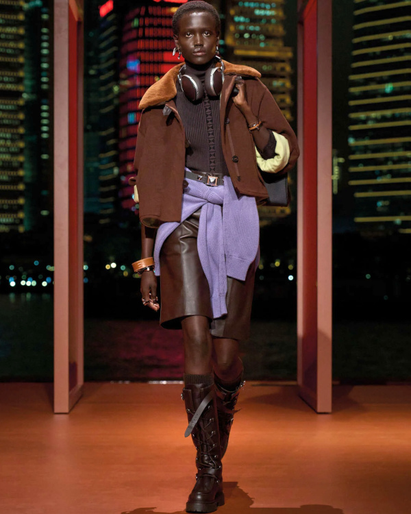 Glisser une robe nuisette sous une opulente canadienne (Miu Miu).
