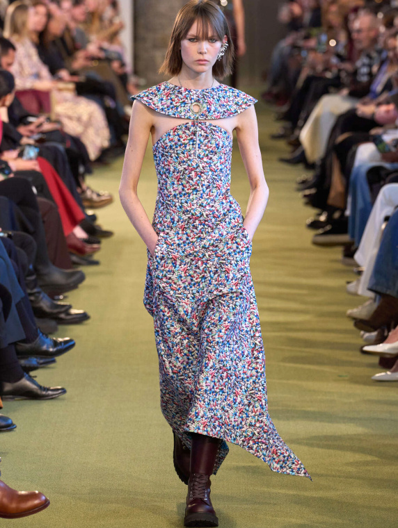Accompagner ses longues robes fleuries d'une paire de rangers (Rabanne).