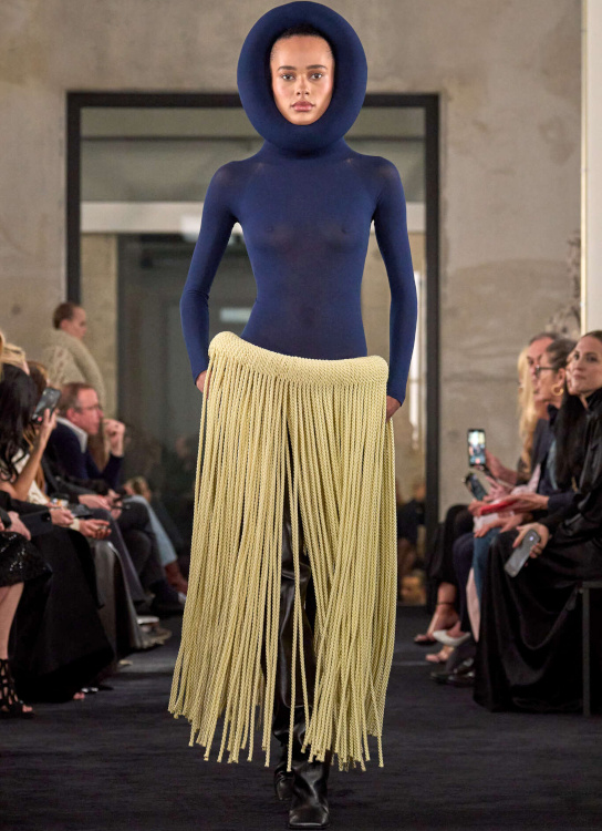 Penser à marier jupe volumineuse et top ultra moulant (Alaïa).