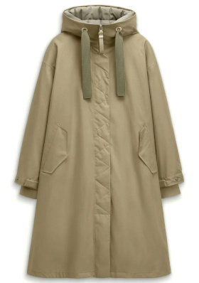 Laisser le débardeur dépasser du pull. Faire sortir les manches du pull de celles du blazer. S'emmitoufler dans la capuche écharpe en entourant les pans de cette dernière autour du cou. Ajouter des gants en cuir noir.