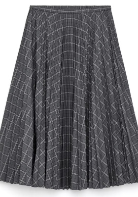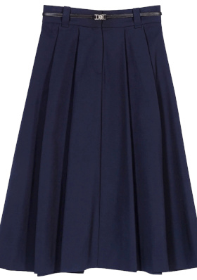 Opter pour un bonnet bleu marine de la même teinte que la jupe (afin de créer un écho chromatique ancrant la silhouette). Laisser dépasser le débardeur du sweat. Ne pas hésiter à ajouter un collier doré un brin massif ou une paire de boucles d'oreilles clip dorées.
