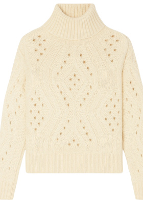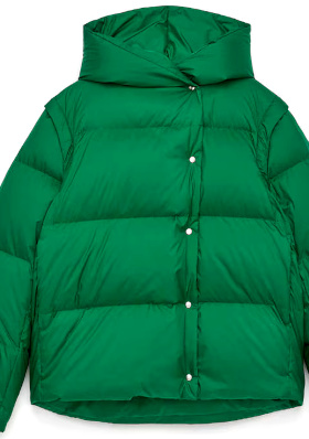 Glisser sous le pull un tee-shirt de la même tonalité que celui-ci (ou légèrement plus clair). Porter le pantalon bas sur les hanches. Se nouer les cheveux en chignon haut (afin de conférer une touche sophistiquée à un look plutôt casual/sportswear). L'idée est ici que le vert saturé apporte de la vitalité à un look misant sur la douceur.