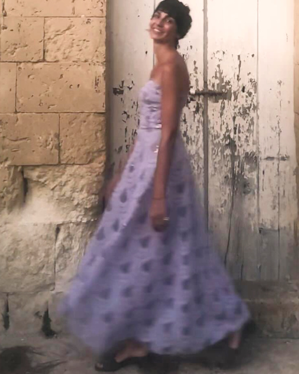Privilégier les robes longues bustier afin de mettre en valeur son port de tête (voir ici et ).