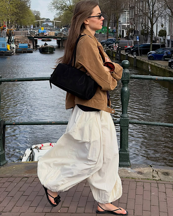 Pièce emblématique des années 2000, le pantalon bouffant s'emploie depuis quelques mois à redessiner les silhouettes en vogue. Sarouel, harem pants, balloon, barrel ou bubble pants : les noms varient, mais l'idée reste la même : un volume généreux aux hanches et/ou aux cuisses, resserré vers la cheville. Reste à savoir comment apprivoiser cette ampleur sans basculer dans le déguisement ni la caricature.
