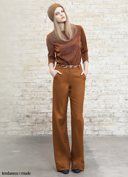 Bandeau tricoté, pantalon patte d'èph' ocre
